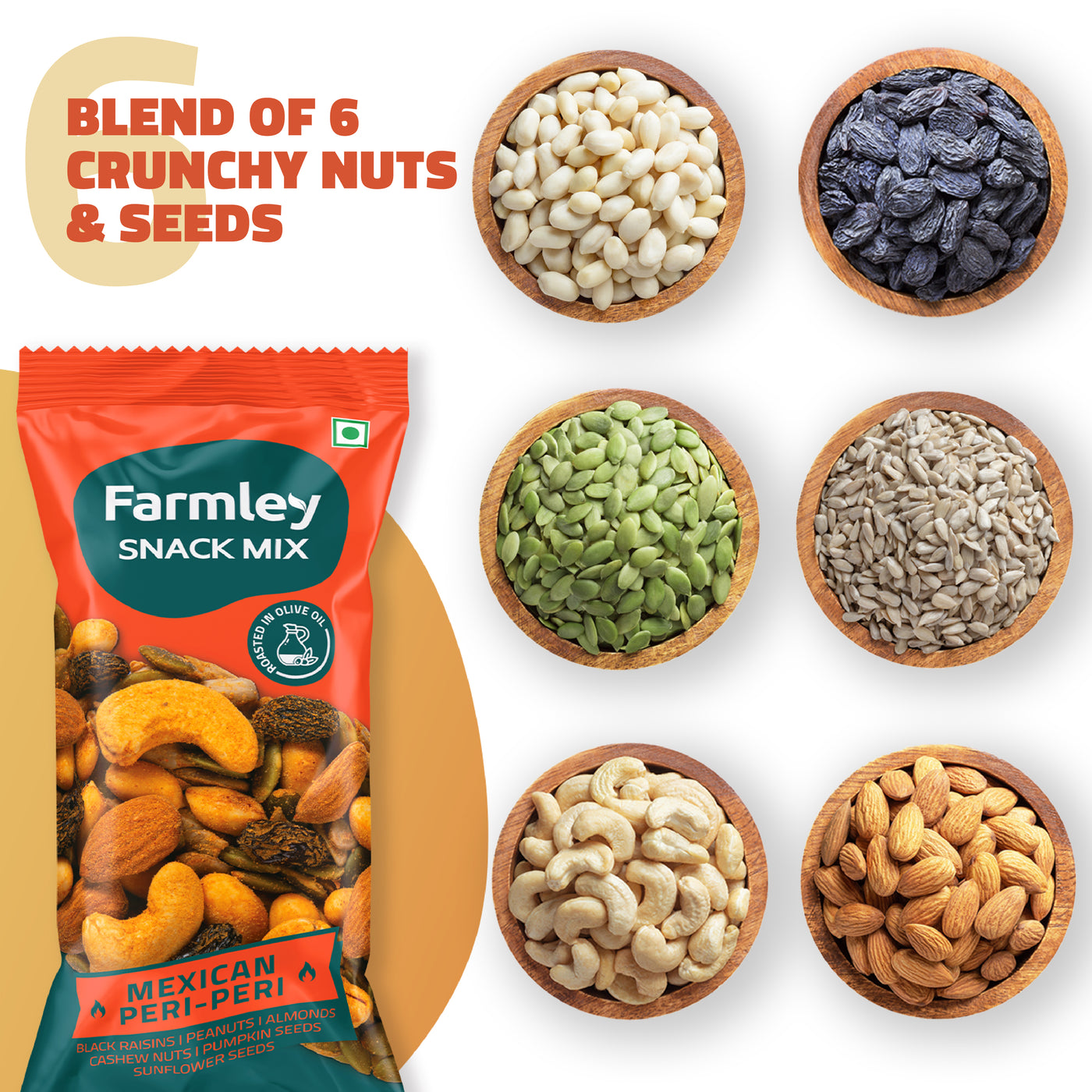 - Farmley's Mexican Peri Peri Snack Mix is sprinkled with a widely loved peri peri seasoning and carries 23% protein content.
