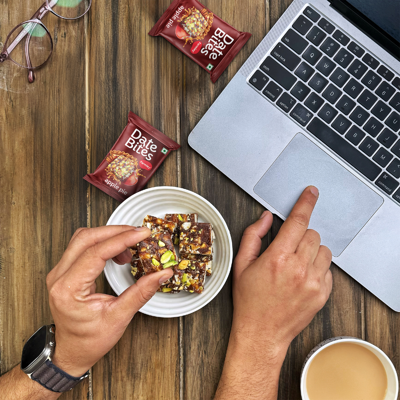 - Introducing Farmley's Date Bites, a delectable dessert crafted from 6 wholesome ingredients - Almonds, Dates, Pista, Cashews, Honey & Ghee.